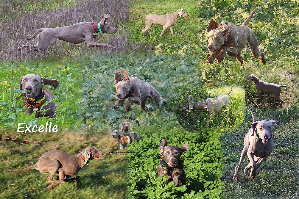 Or Excelle dbdb dite Excelle, est née d'un mariage exceptionnel entre une des meilleures Lices Européennes et des plus titrées, avec notamment 3 titres nationaux : Belge CHB, Français CHFr et Allemand ChVDH, + 2 titres Internationaux : ChIB et ChIE, trialer et multiples classements en Fields sur GN (5 classements en 10 concours), BCE, TST, RST Hike des Brumes des Bois et l'incontournable et impressionnant multiple Champion de beauté (Ch Fr) et de travail (CHP et ChA) Upper des Ombres des 4 Nuits. Nous attendons énormément de ce mariage dont les chiots sont partis en Afrique du Sud, USA, Hongrie, Belgique.